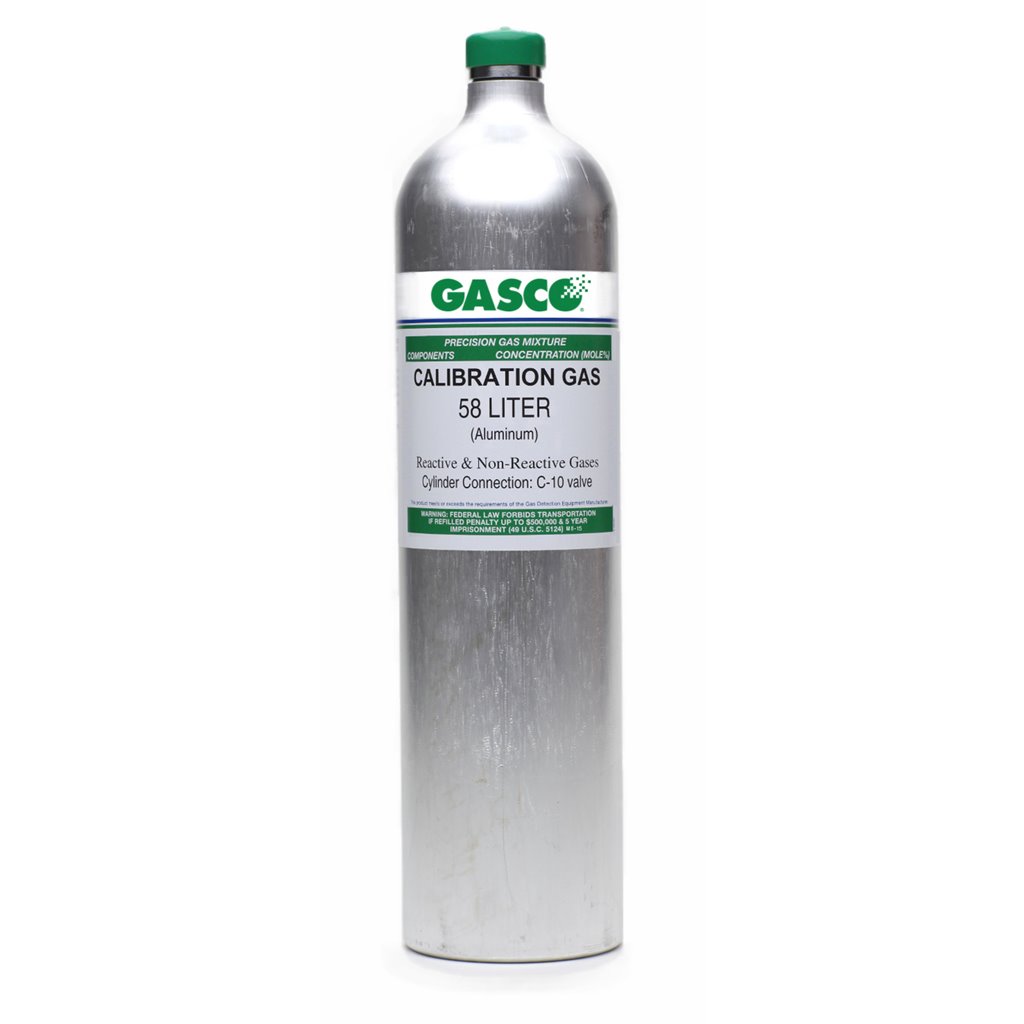 116 LITER CALIBRATION GAS CYLINDER ALUMINUM CANISTER 60PPM CARBON MONOXIDE, 20PPM HYDROGEN SULFIDE, 1.45% METHANE, 15% OXYGEN, NITROGEN BALANCE W/ C10 CONNECTION